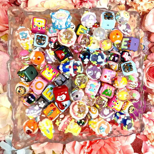 Hand-Painted Beads Blind Bags for Beadable Pen/ Key Chain - Open in live