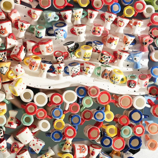 Hand-made Ceramic Mini Cup Blind Bags for Keychain - Open in live